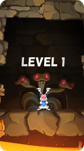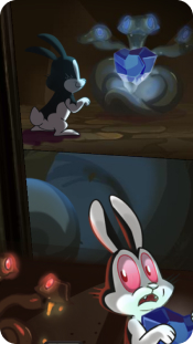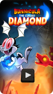 Bunnicula and the Cursed Diamond is a 9 stage flight escape game where you help Bunnicula exit the top of the cave before rising lava reaches him. Use the blue diamond to light the hidden torches along your way.